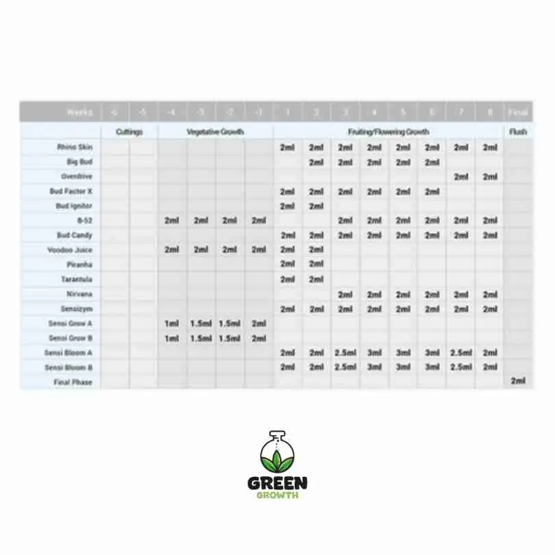 Sua composição ativa enzimas vegetais necessárias desde o início da floração, tornando os seus buds mais saborosos, de aroma doce e potente na colheita.