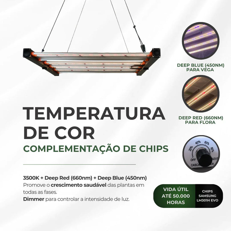 PPF: até 1392 µmol/s | Eficiência: até 3,1 µmol/J