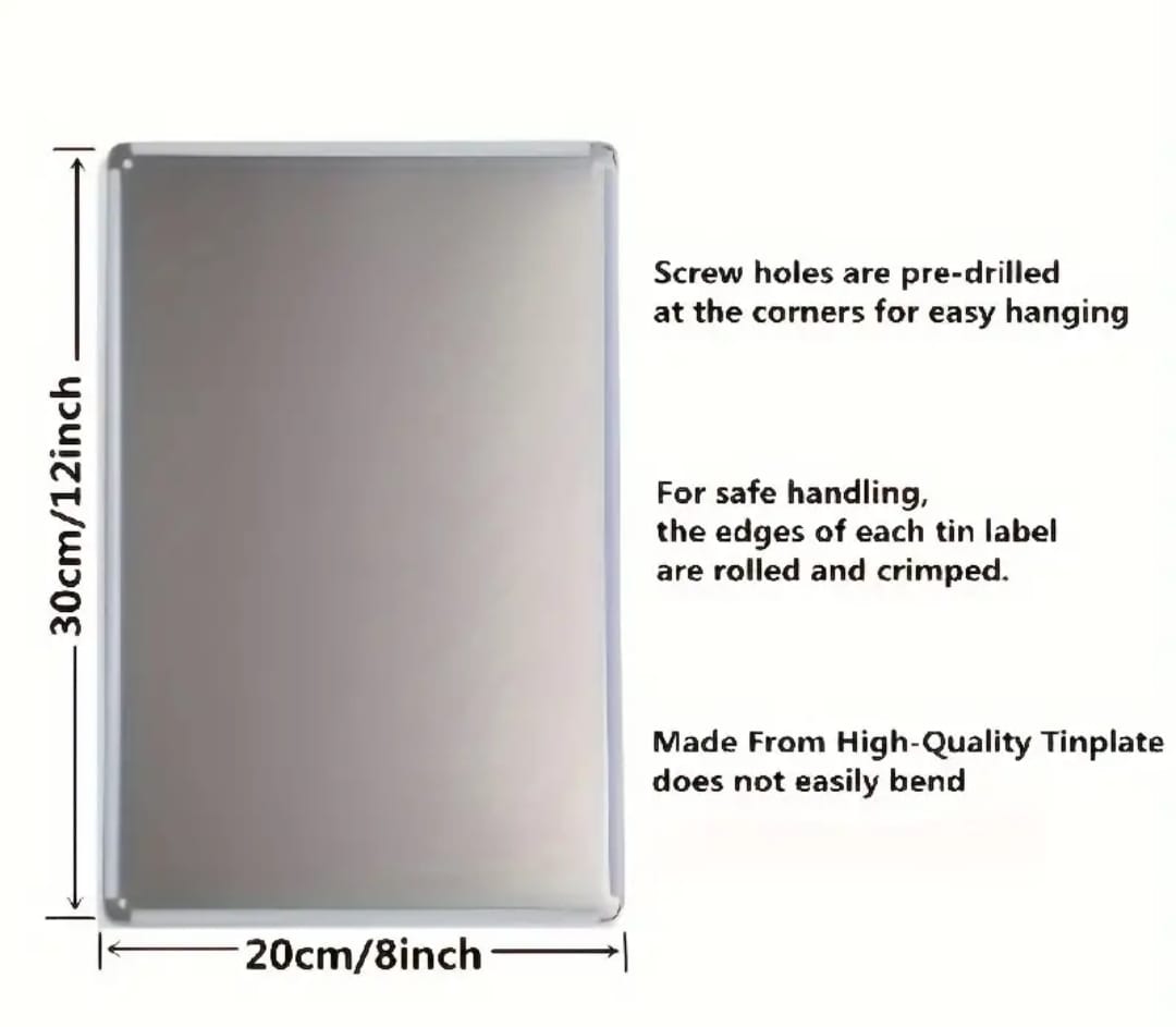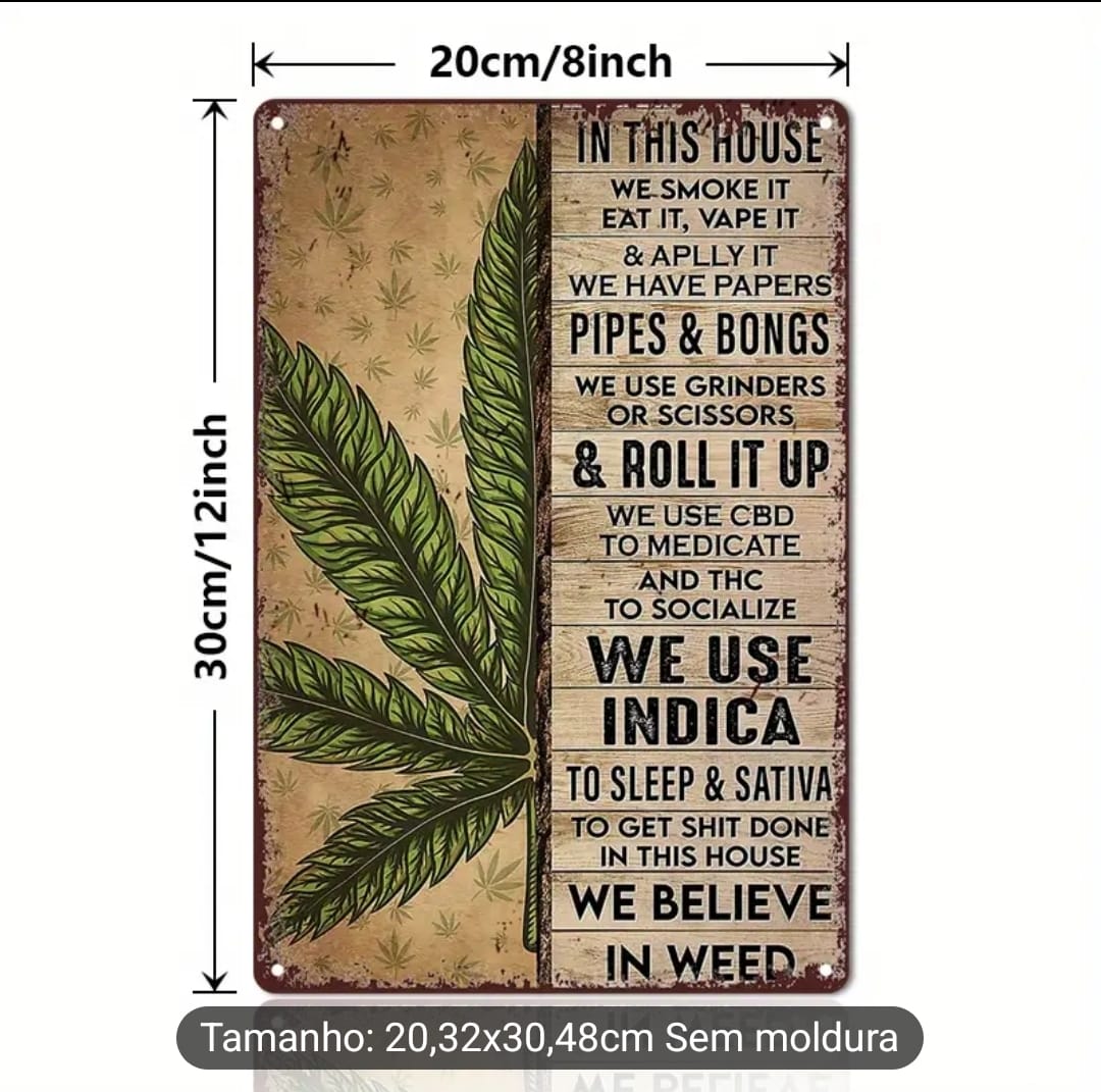 Placa de metal vintage com folha e indicação de “Regras da Casa”.