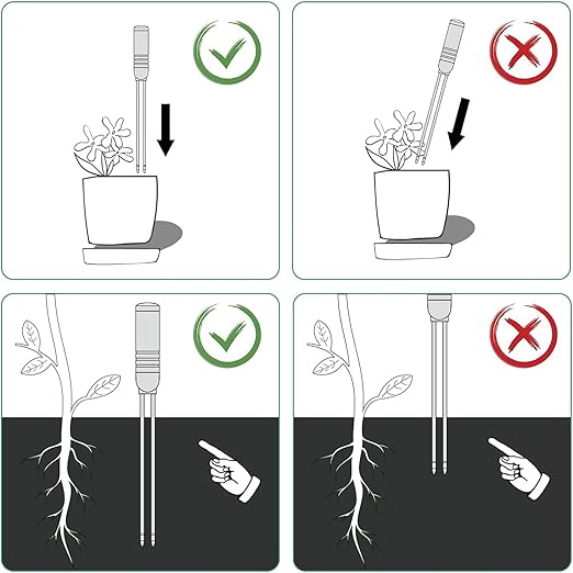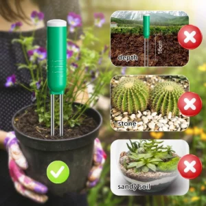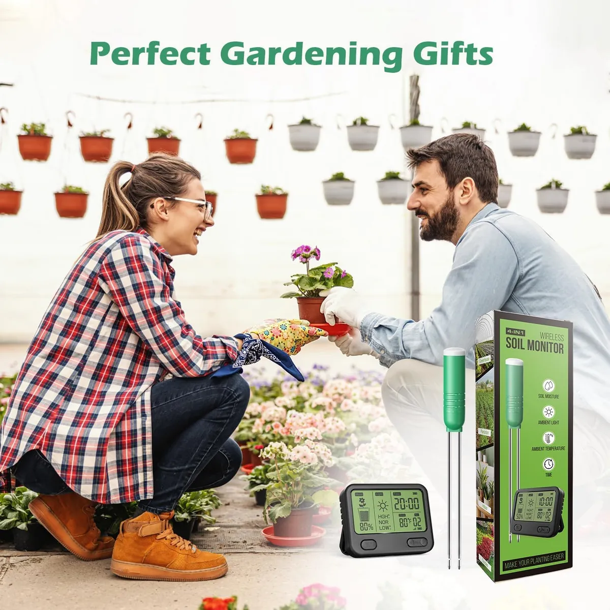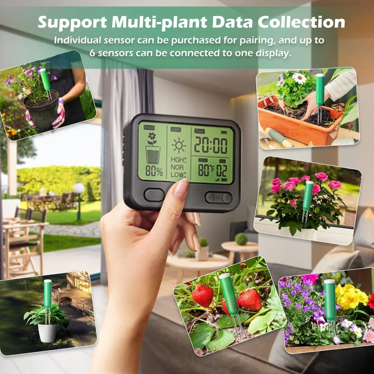 Função 4 em 1: este é um detector de umidade do solo quatro em um versátil. O produto consiste em uma sonda e um visor terminal. A sonda mede a umidade do solo, a temperatura ambiente e a intensidade da luz. Você pode ler esses dados e o tempo no visor.